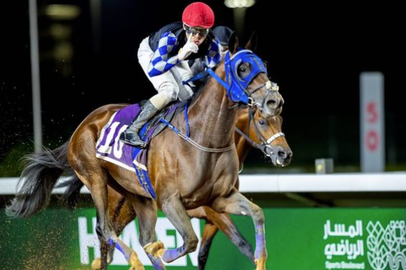Athbah Racing’s homebred DERGHAM ATHBAH claims his fifth career victory in the Riyadh Season Al-Dareyah Cup (Obeya Qualifier) Race over 2000m at King Abdulaziz Racetrack. With his win, DERGHAM ATHBAH is a qualified runner for the Obeya Cup as part of saudi cup 2024.