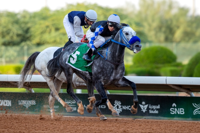 Athbah Racing’s FOO DE PINE lands his 6th career victory in the 1600m Open Race for Arabians at King Abdulaziz Racetrack Riyadh Season