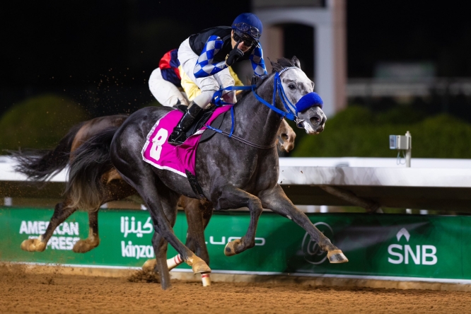 Athbah Racing’s FOO DE PINE lands his fifth career win in the PSAIAHF 1200m open race for Arabian horses at King Abdulaziz racecource in Riyadh, Riyadh Season