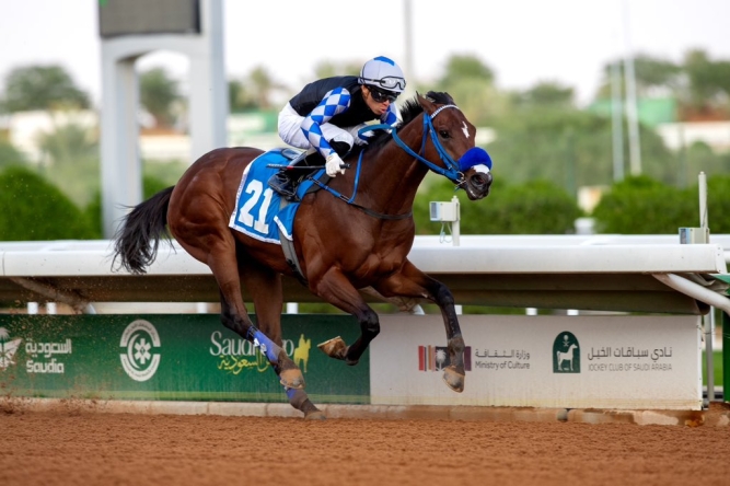 Athbah Racing’s SINAN (Thoroughbred) breaks his maiden by 5 lengths over the runner-up horse in the 1200m race at King Abdulaziz Racecource in Riyadh, Riyadh season