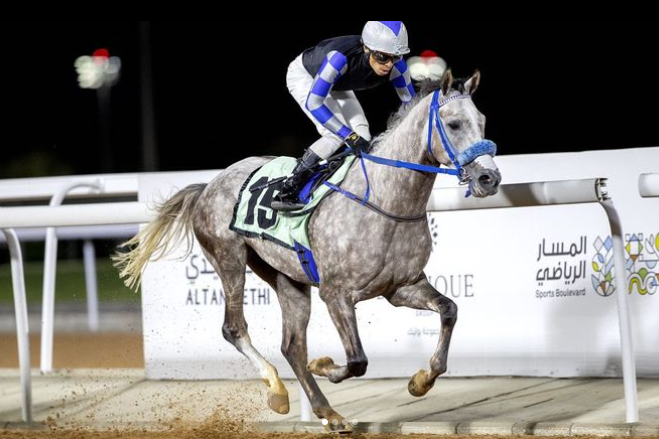 03/08/2023حقق الجواد "يزمي عذبه" إنتاج عذبه للسباقات والعائد له انتصاره الأول من ثاني مشاركة له في سجله السباقي بفارق طول ونصف في شوط الخيل العربية المبتدئة لمسافة 1600 متر في ميدان الملك خالد للفروسية، الطائف.